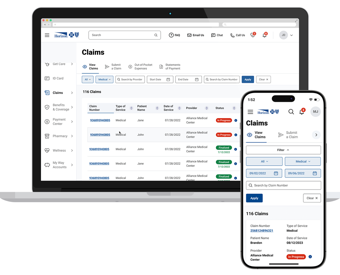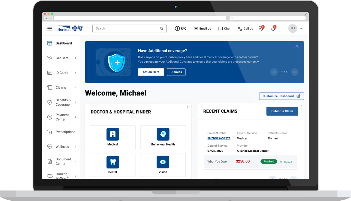 • Description: Horizon Blue health insurance user portal (desktop responsive design) and app (iOS and Android).
